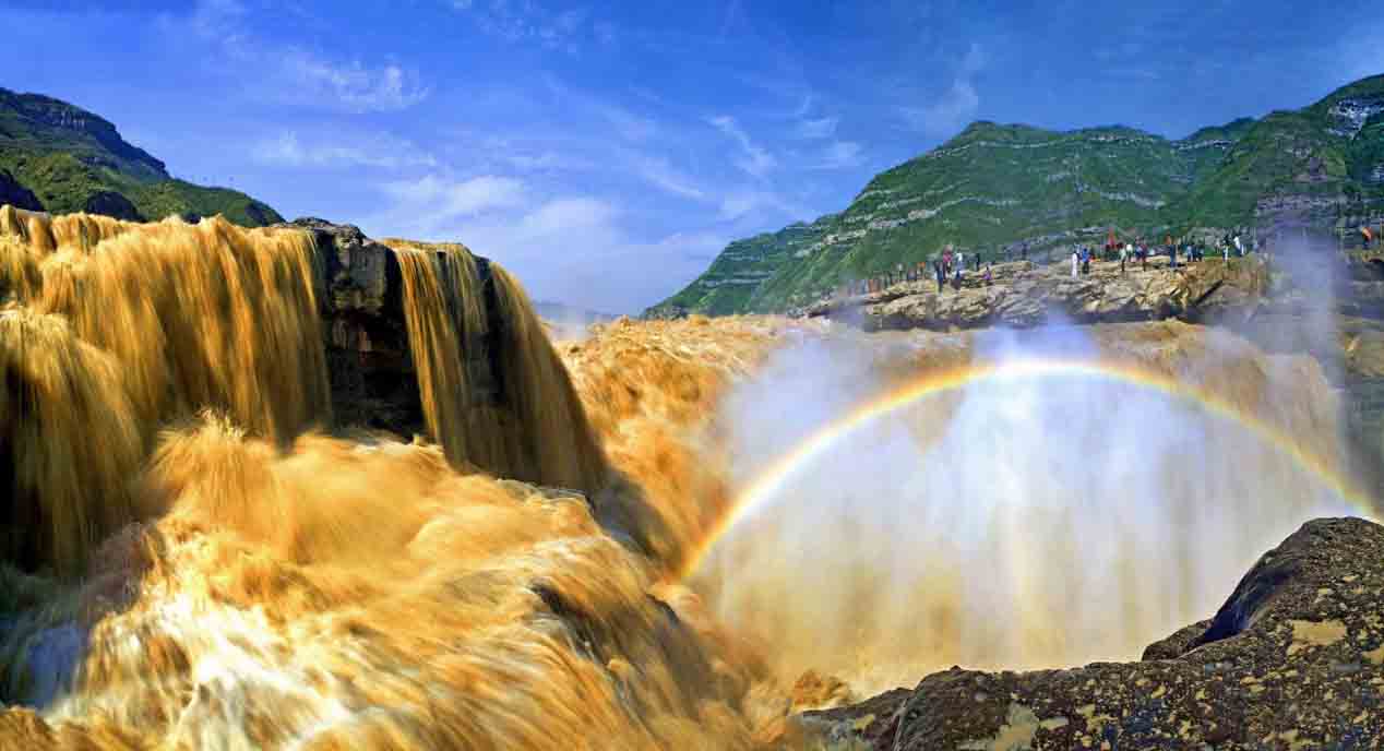 陜西黃河壺口瀑布景區是以奉晉峽谷為主體,集濕布、峽谷、龍王迪、十里龍槽、孟門山、大禹廟、古渡口、黃河大合唱實號演出等為一體的文化旅游景區。是國家重點風景名勝區(1988)、國家4A級景區(2008)、國家水利風景區(2013)、國家地質公園和地質遺跡保護區(2002)。素被國人譽為“黃河之心·民族之魂”。